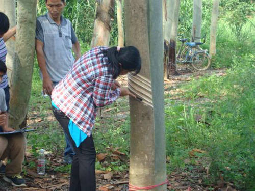 6月5日上午,对学员们进行橡胶树桩割胶考核。经考核,全班15名学员成绩优秀,准予结业,割胶技术培训班圆满结束。